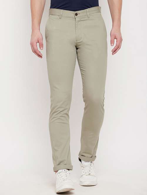 - » olive-green solid flat front casual trouser