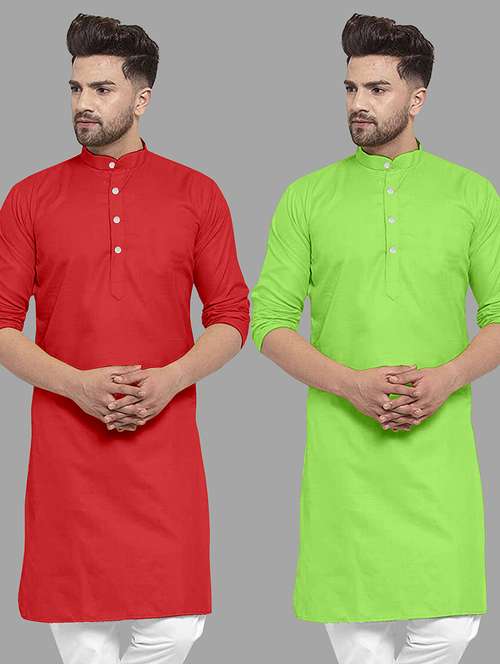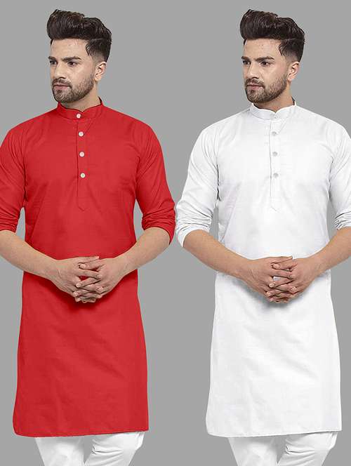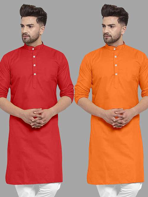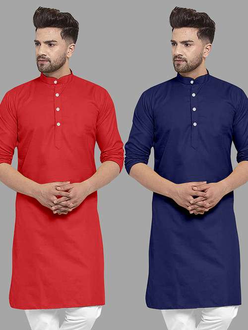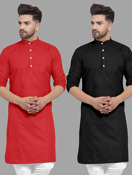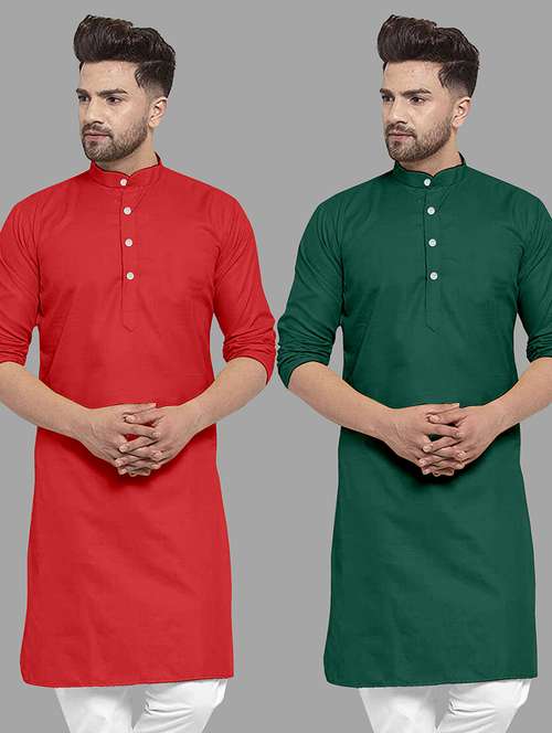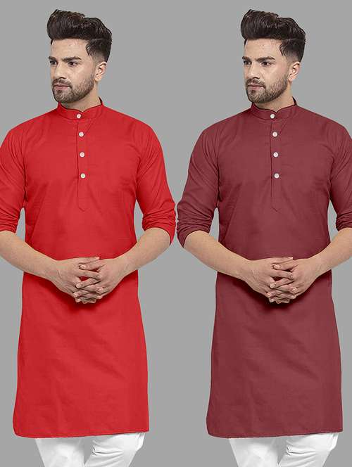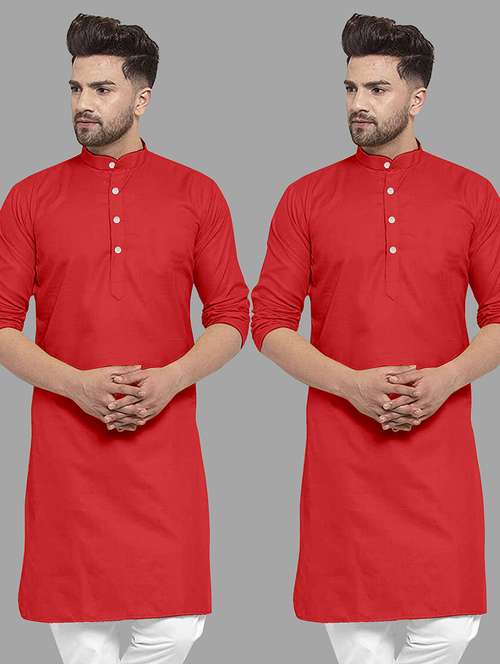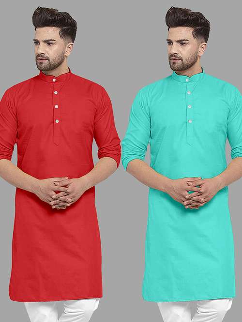 - » men pack of 2 solid mandarin neck long kurta