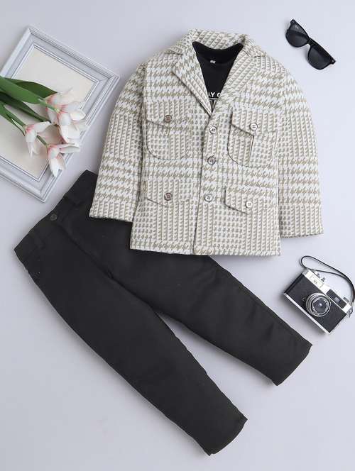 boys houndstooth pattern three piece suit set