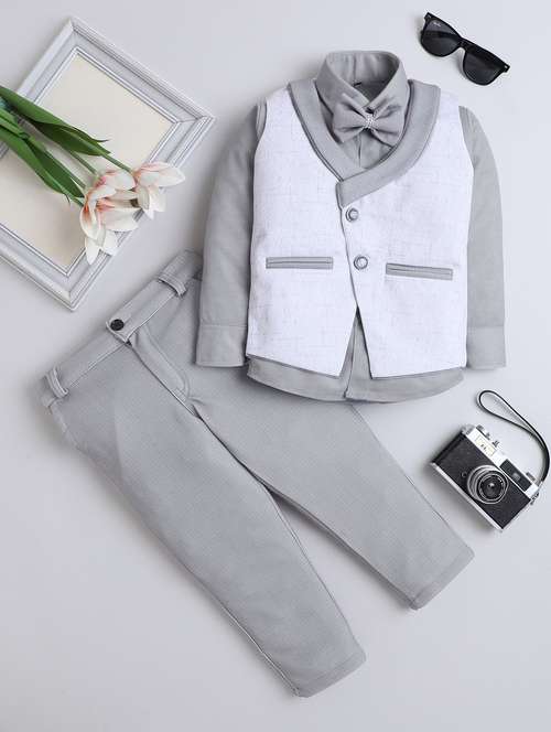 - » boys solid shirt and trouser with wasitcoat set