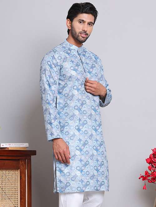 - » men printed mandarin neck long kurta