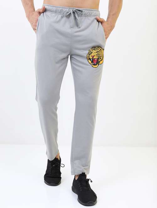 men placement print regular fit track pant