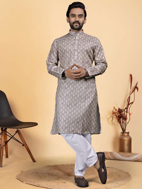 Grey Digital Print Cotton Blend Kurta For Mens