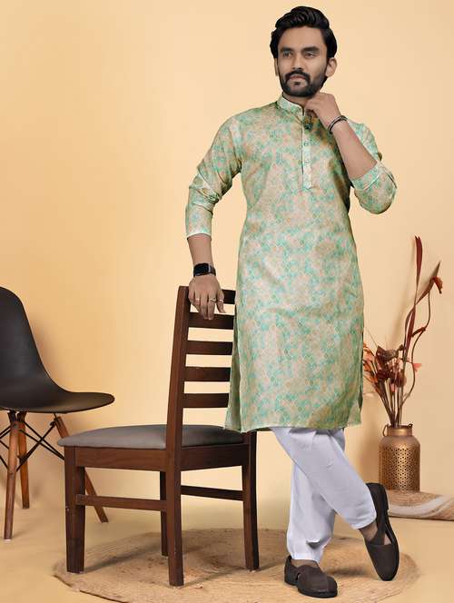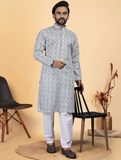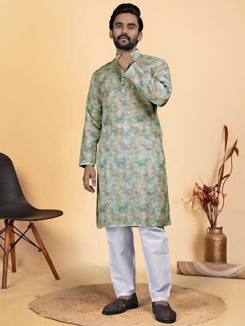- » men printed mandarin neck long kurta