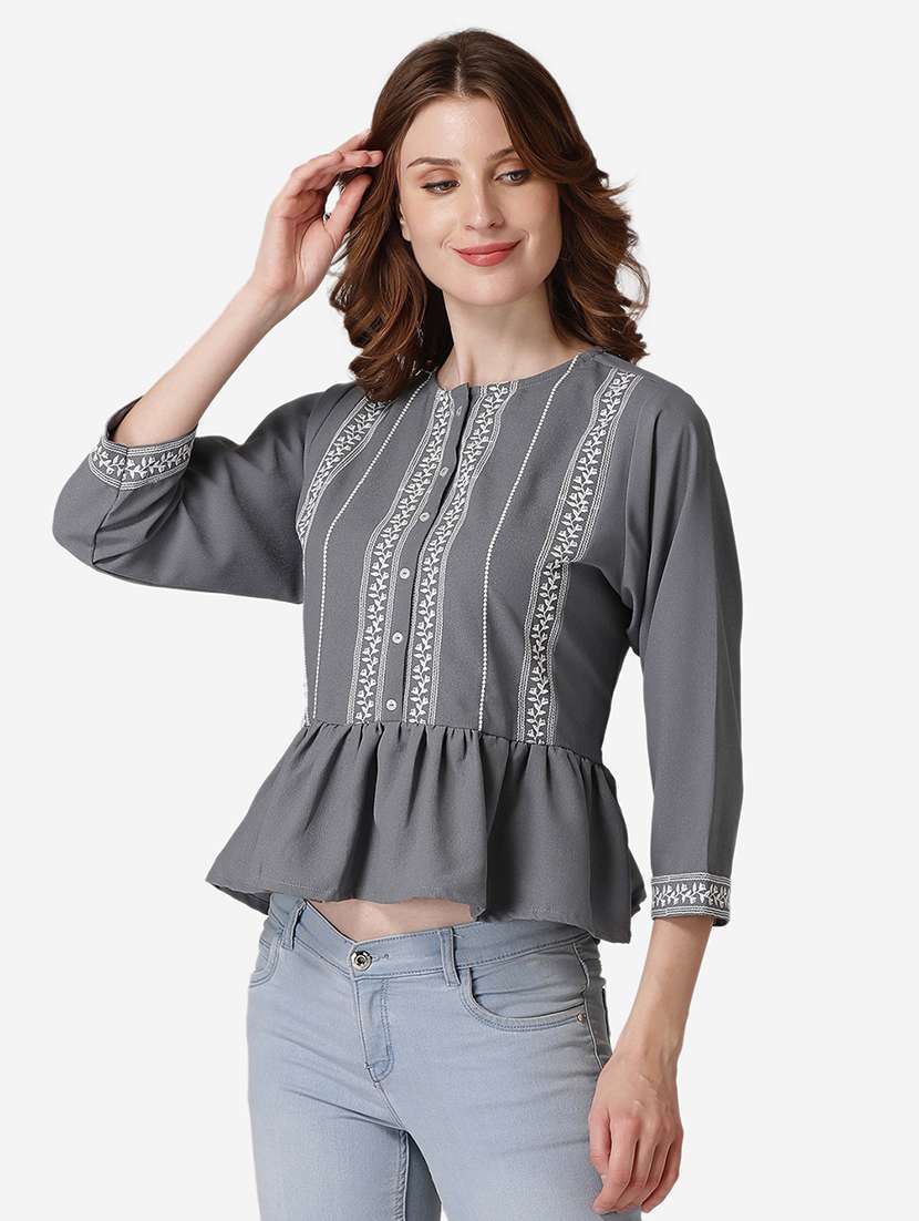 round neck embroidered detail top