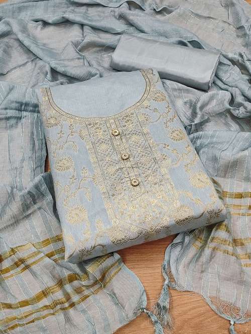 - » women self design embroidered unstitched suit set