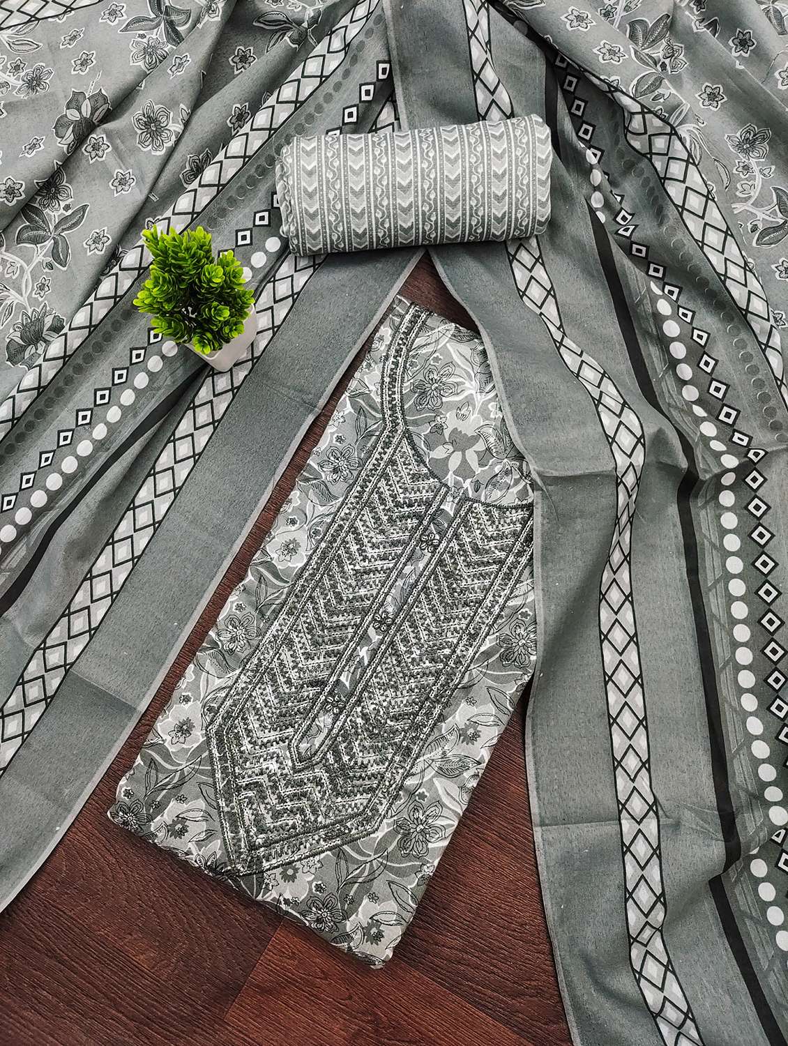 - Look ultra gorgeous in unstitched suits from Leeli Peeri Designer and grab these beautiful suits in grey colour.