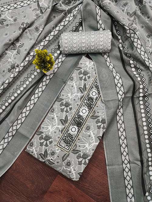 - Look ultra gorgeous in unstitched suits from Leeli Peeri Designer and grab these beautiful suits in grey colour.
