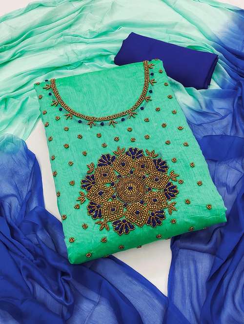 - Look ultra gorgeous in unstitched suits from Leeli Peeri Designer and grab these beautiful suits in sea green colour.