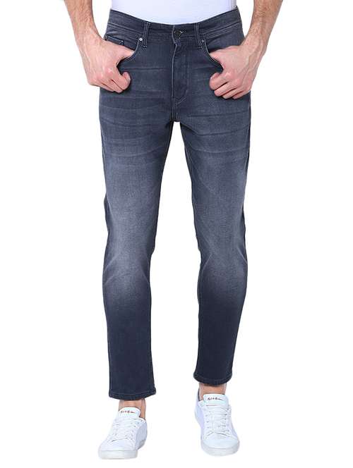 blue cotton blend washed jeans
