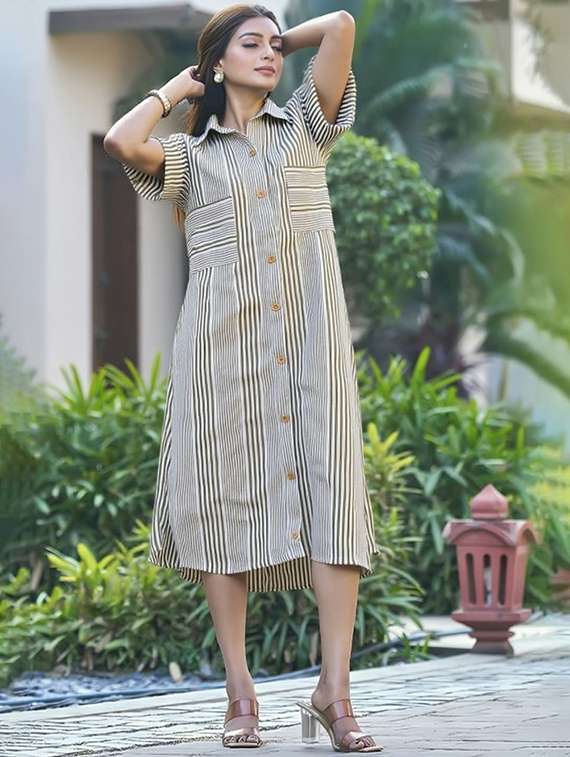 women striped short sleeve collared shirt dress - 22084586 - Very Small Image - 1