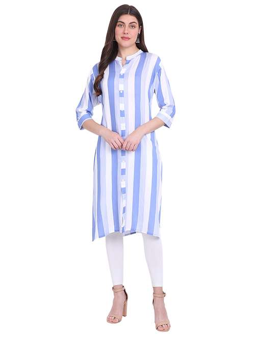 - Grab this beautiful kurta made up of cotton blend fabric featuring mandarin collar neck designs.