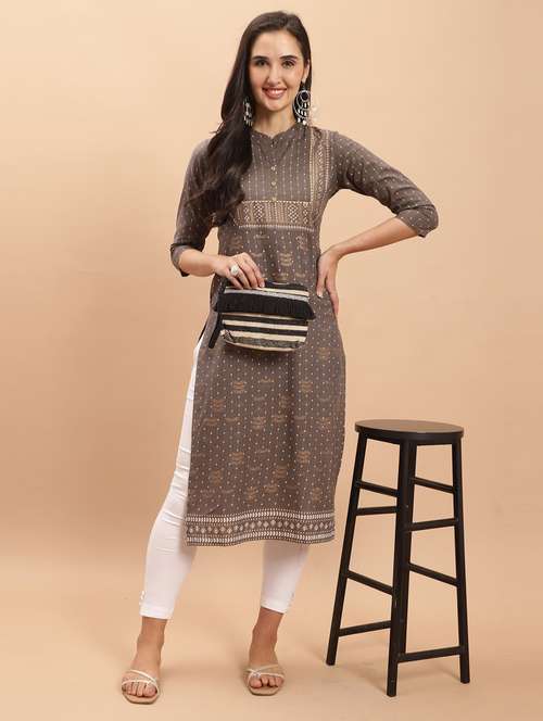 - Look pretty in a kurta from Rajnandini and get it in brown. LimeRoad has something for everyone.