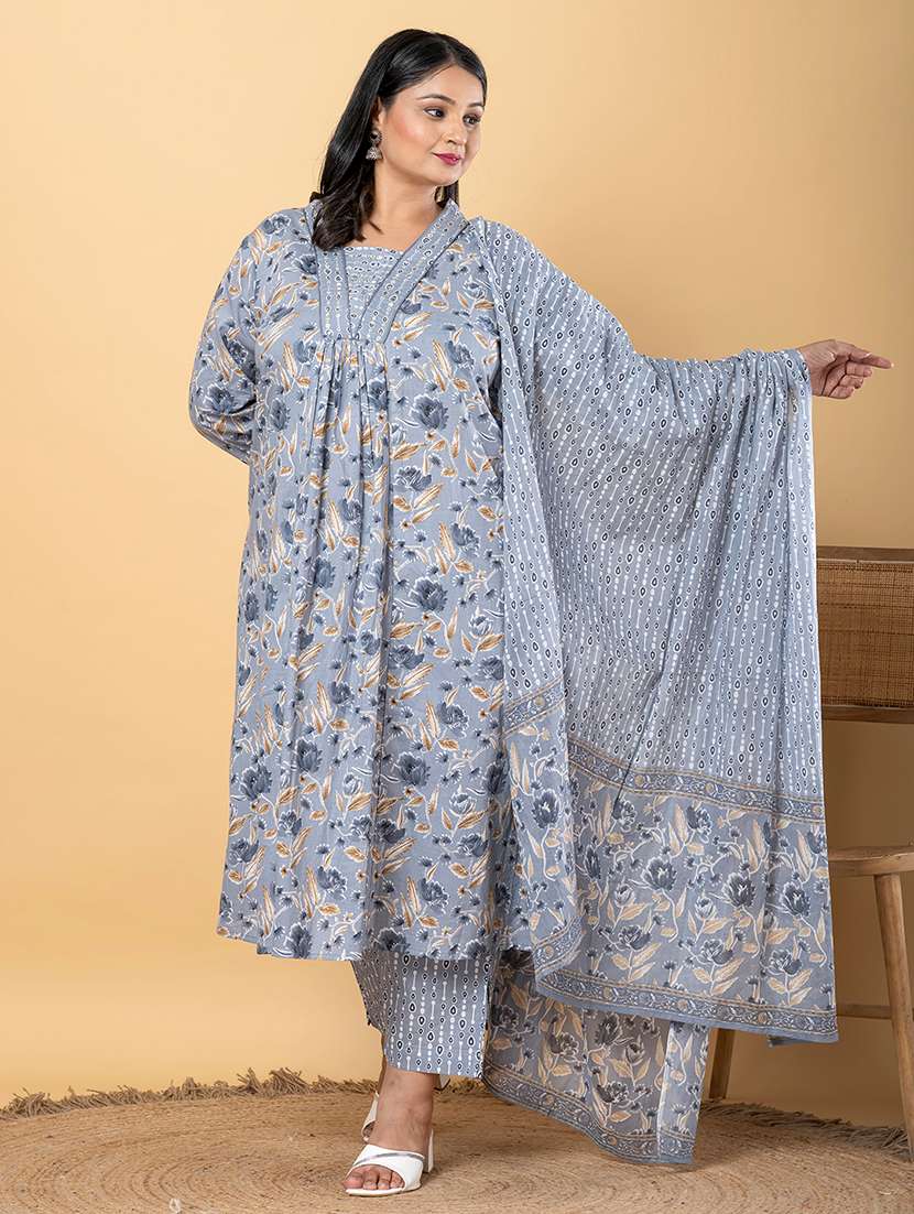 - Find gorgeous sets of ethnic wears in trending designs in grey colors suitable for festive wear of occasions.