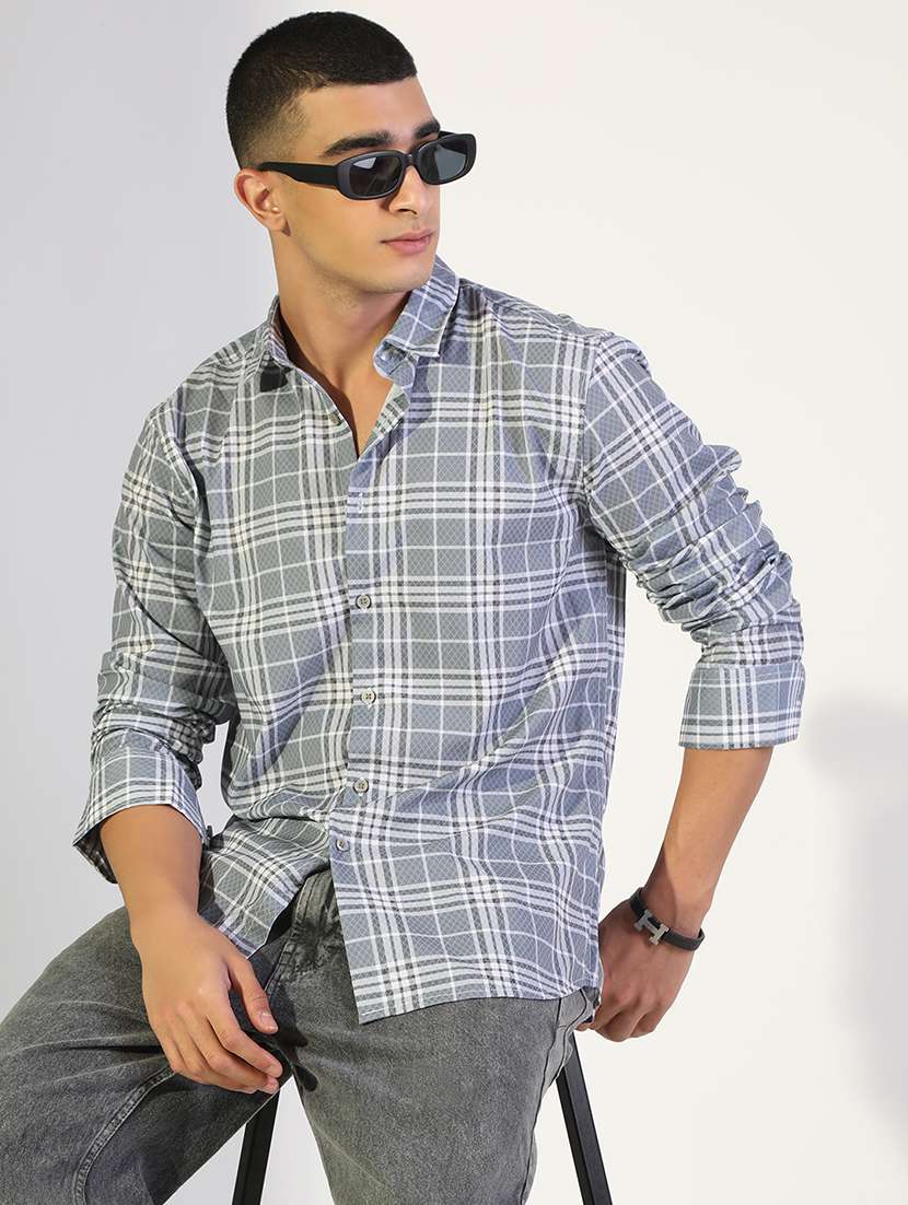 - » men checkered collared long sleeve shirt