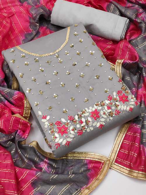 • Look ultra gorgeous in unstitched suits from Manvaa and grab these beautiful suits in grey colour.