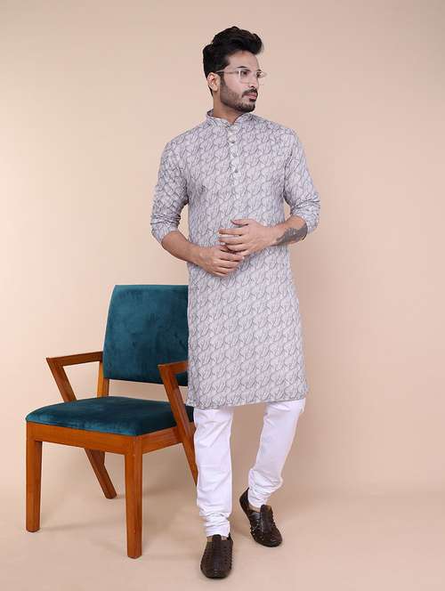 - » men printed mandarin neck long kurta