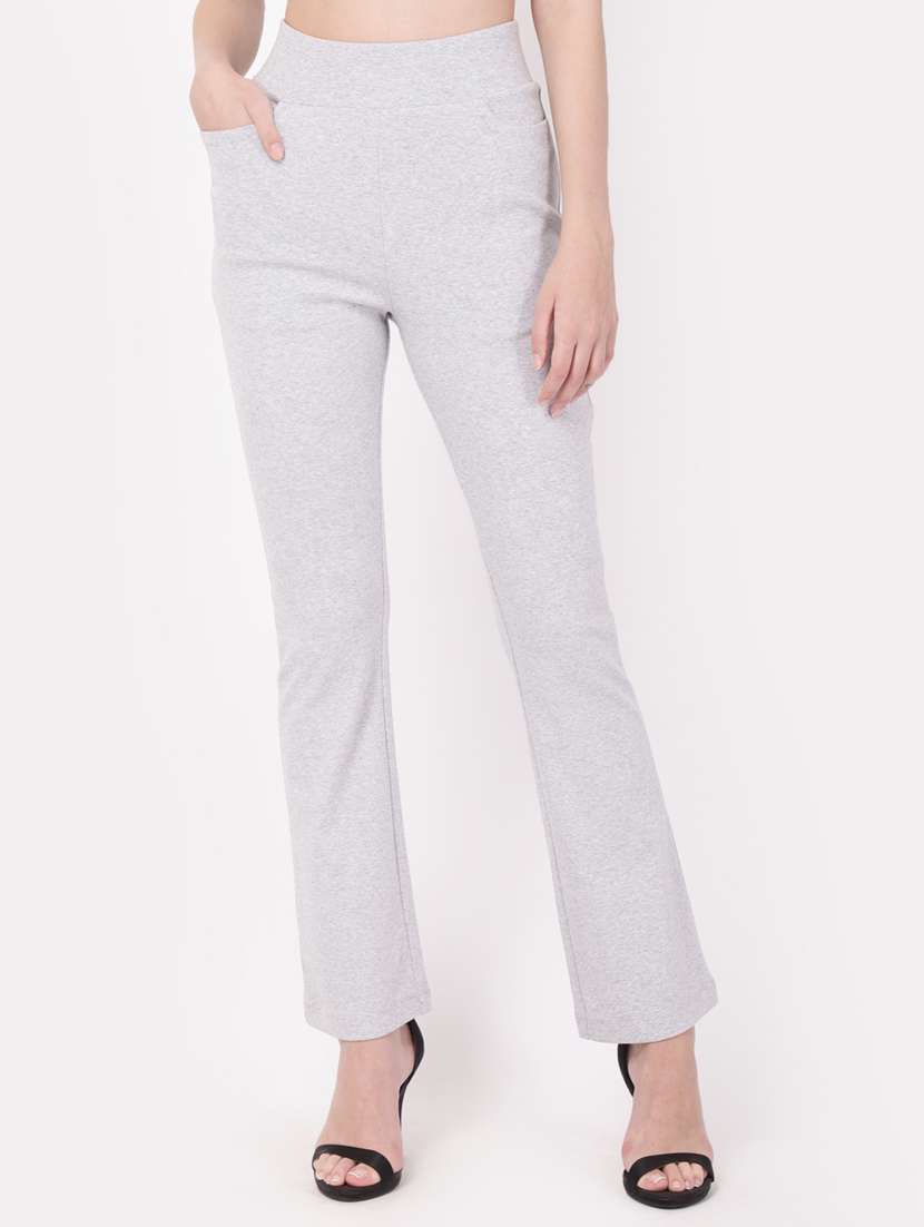 - » grey solid flat front trousers trouser