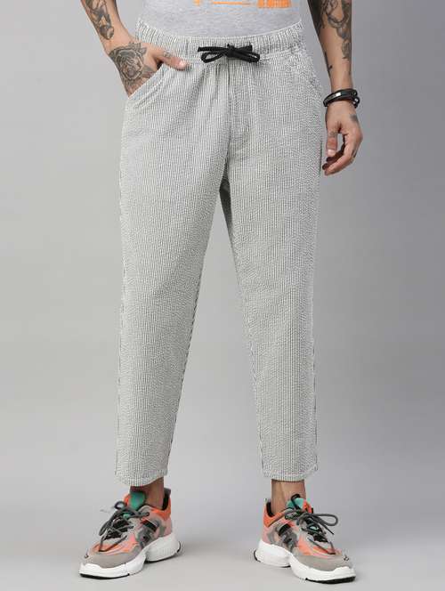 - » grey striped flat front casual trouser