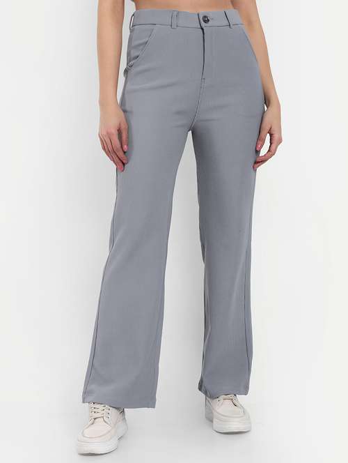 grey cotton wide leg trouser