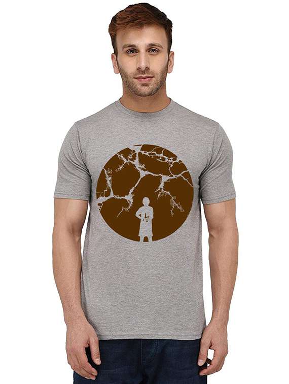 grey front printed casual t-shirt
