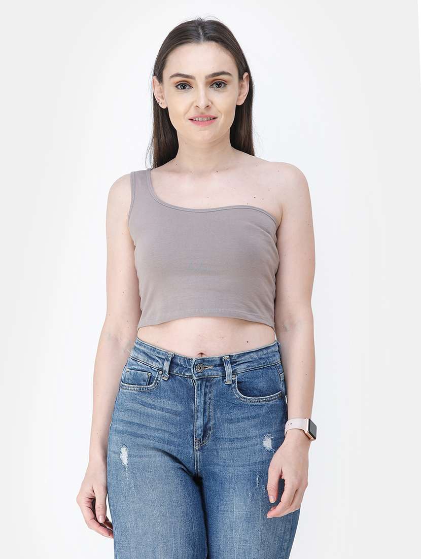 - » women solid single shoulder crop top