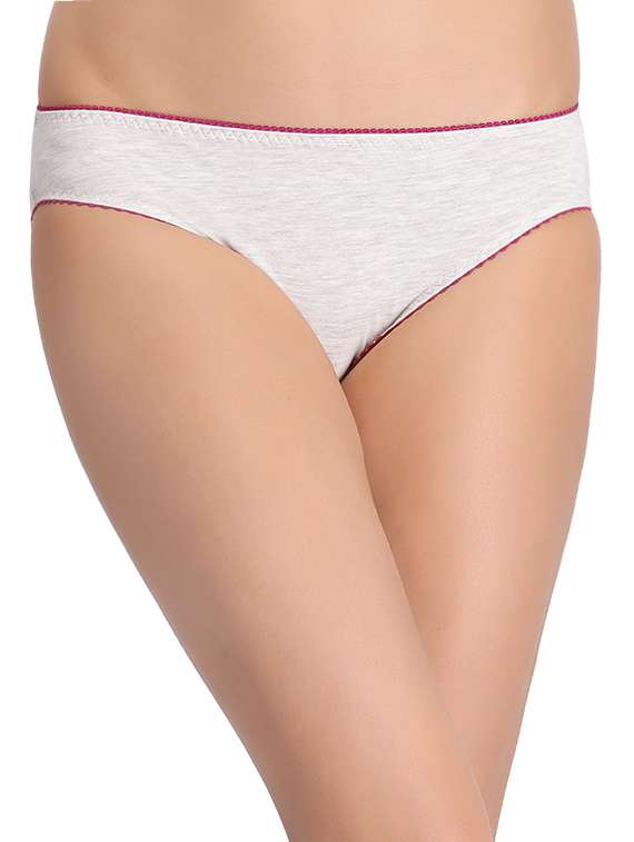 Mid waist bikini with medium coverage. Crafted with soft stretchable fabric all day comfort. Contrast elastic trims along waistband and leg openings for a snug fit. Cotton lining at the crotch for a snug fit.