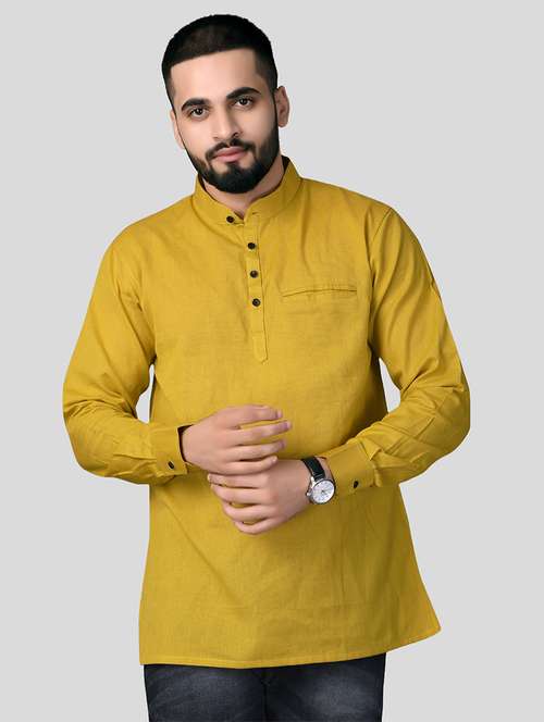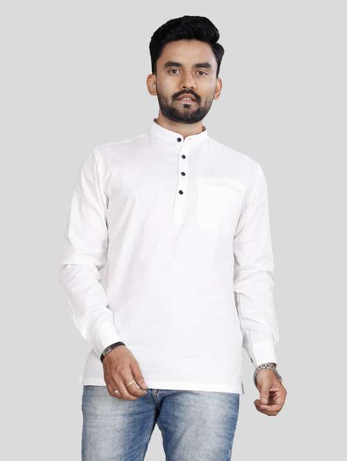 From Crown World - SHLOKA_DESIGNER brings cotton men's A-line Short kurta for men is made up from cotton and the print and design is weaved on handloom and power loom. This fabric is made up of cotton to give you immense feeling and premium comfort throughout the day. These cotton kurta for men is made up of the latest design which is nowadays very popular in young and old groups. This pattern is gaining attraction in metro cities as the tradition meets with the classic needs.