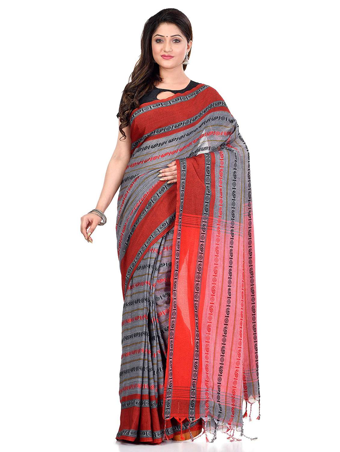 - » women's printed grey colored saree with blouse