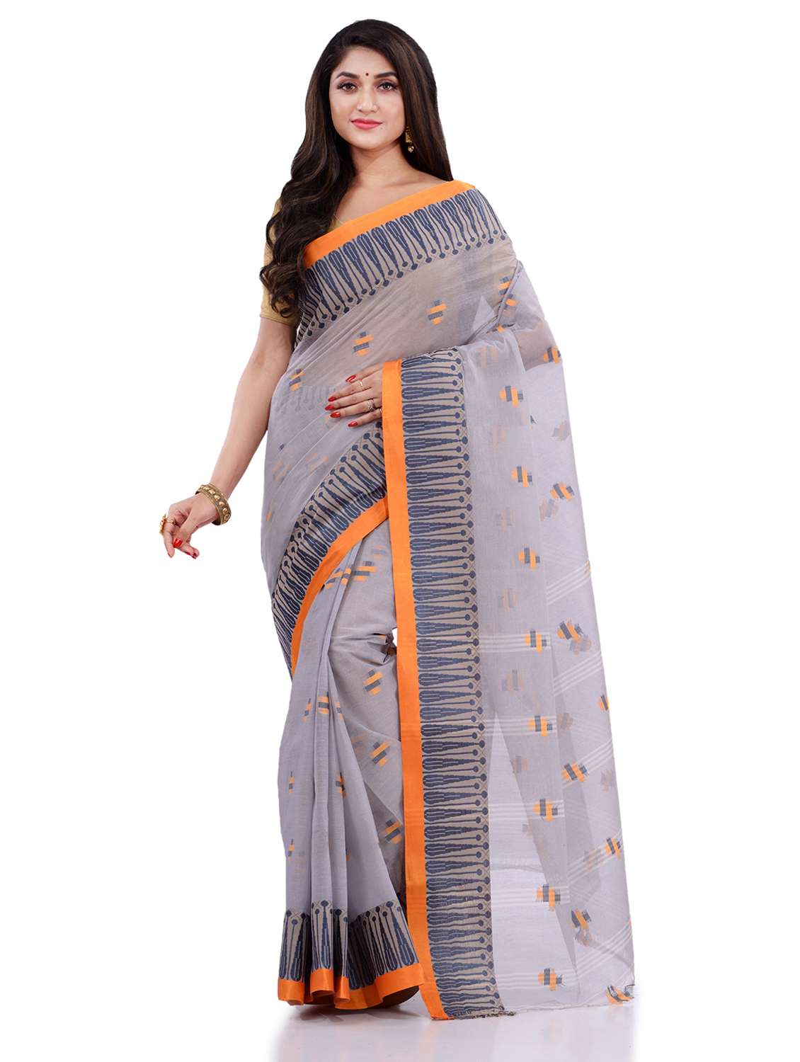 Explore the collection of beautifully Bengal Traditional Tant/Tangail Handloom Cotton Saree Hand Made Cotton Tant Saree of West Bengal Tikli Woven Designer Woven Design Pure Handloom Cotton Saree from Desh Bidesh. Tikli Woven Designer Saree Its Make you feel of love Each piece is elegantly crafted and will surely add to your wardrobe. Perfect Festival Saree for all ages Womens Pair this piece with heels or flats for a graceful look like Puja, Fasival, Casual, Party Designer Saree. You can wear this saree in all occasions specially Puja, Party and any occasion in your family or friends. The decorative material is Cotton Threads. Its unique color combination and Soft Bengal handloom Cotton tant saree The Elegant Class saree has comes from the Desh Bidesh. customer satisfaction is the utmost priority . The color may vary due to screen setting . Fabric: Pure Cotton; Length: 5.5 meter Set Content: Without Blouse Piece