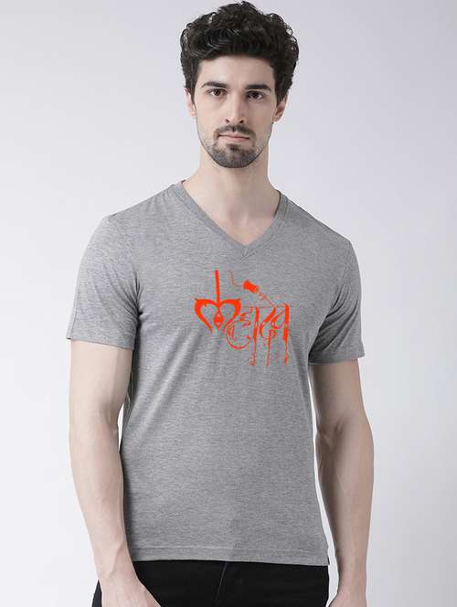 - » men v-neck chest printed t-shirt
