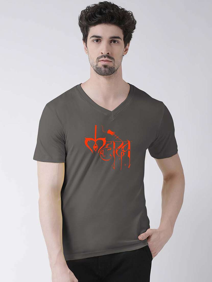 men v-neck chest printed t-shirt