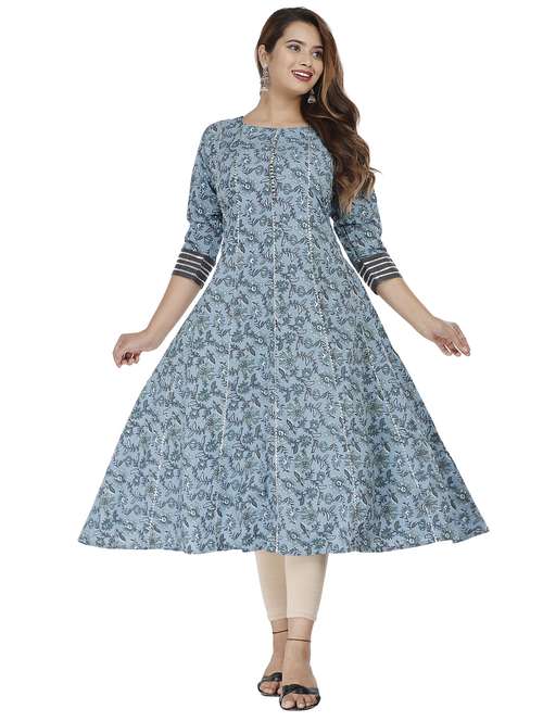 - » blue printed fit & flare ethnic dress