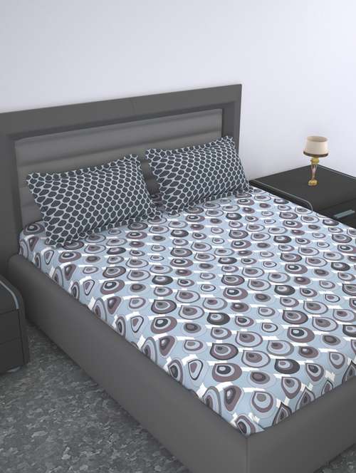 - » 120 tc rich cotton flat bedsheet for double bed with 2 pillow covers|90x100 inch|design abstract|color - grey|