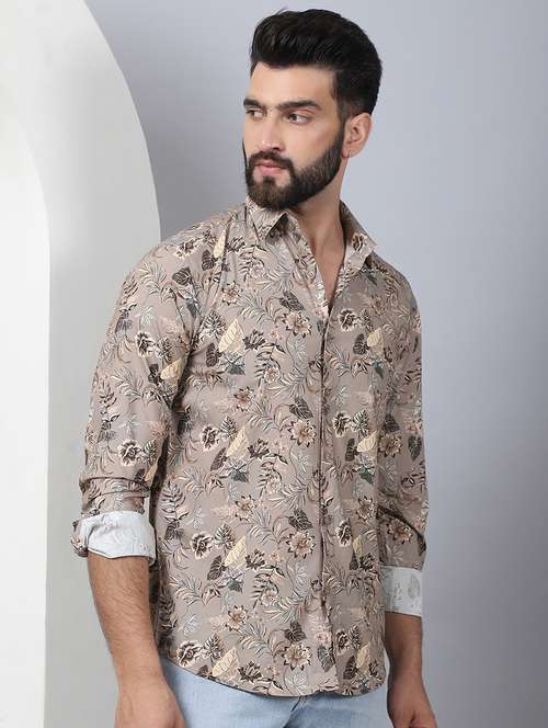 - » men printed long sleeve casual shirt