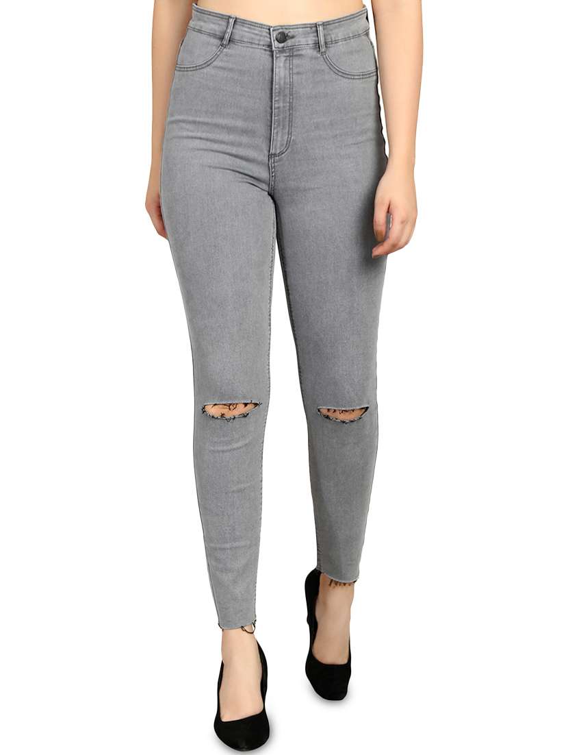 - » high rise knee slit jeans