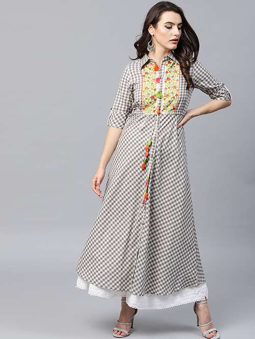 - » a-line checkered ethnic dress