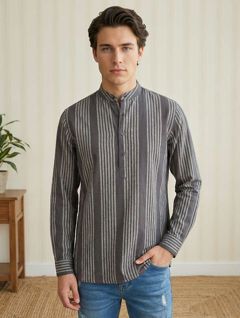 men striped mandarin neck short kurta - 22395560 -  Standard Image - 1 men striped mandarin neck short kurta - 22395560 -  Zoom Image - 1