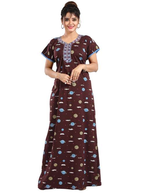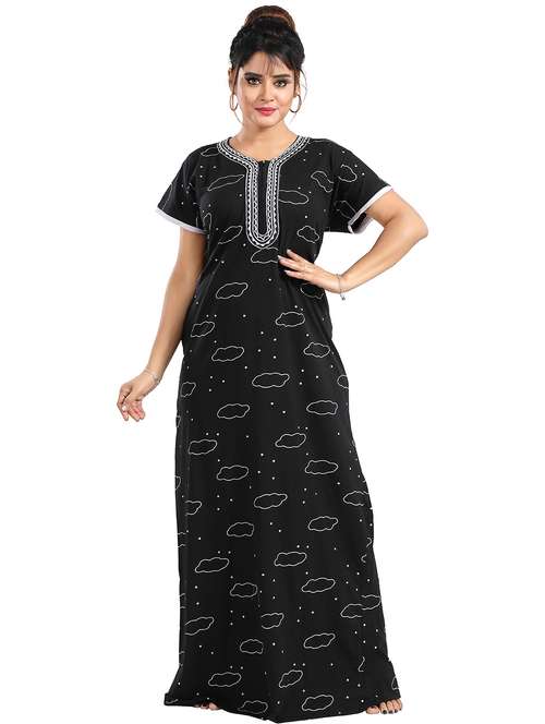 Elevate your nighttime comfort with the LadyVenom Women's CottonSinker Nighty/Night Dress/Gown Printed Maxi. Crafted from premium cottonsinker fabric, this night dress is designed to offer you the perfect blend of softness, style, and comfort. Experience luxurious softness against your skin with the high-quality cottonsinker material. This fabric ensures a gentle and soothing feel, allowing you to relax and unwind after a long day. Featuring a printed maxi design, this night dress exudes elegance and charm. The beautiful prints add a touch of personality and flair to your nighttime attire, making bedtime feel like a fashionable affair. The loose and flowy silhouette of this nighty provides you with unrestricted movement, allowing you to move freely and comfortably as you sleep. Whether you're lounging around the house or getting ready for bed, this night dress offers versatility and ease. With its timeless design, this nighty is suitable for all seasons. From warm summer nights to chilly winter evenings, it provides the perfect combination of comfort and style, ensuring you feel fabulous all year round. Available in a range of sizes to cater to every body type, the LadyVenom Women's CottonSinker Nighty/Night Dress/Gown Printed Maxi ensures a comfortable and flattering fit for all. Treat yourself to ultimate relaxation and sophistication with this must-have nighttime essential.