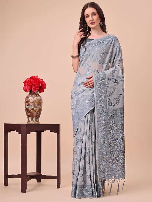 Women's Linen Cotton Saree with Rich Woven Design and Unstitched Blouse Piece