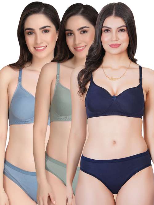 Liigne Women Everyday Padded Bra Panty Set (Pack Of 3) - This Lingerie Set Made of Pure Cotton