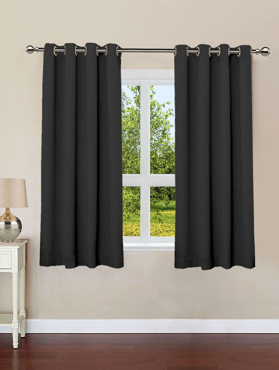 lushomes pirate black plain cotton curtains with 8 eyelets & plain tiebacks for windows