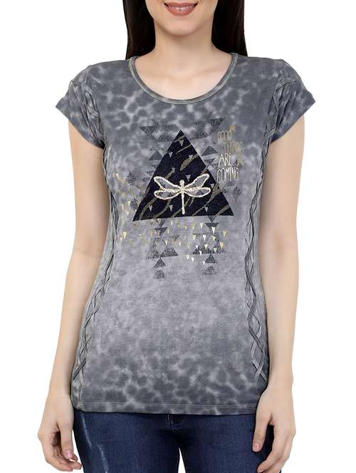criss cross detail graphic print tee