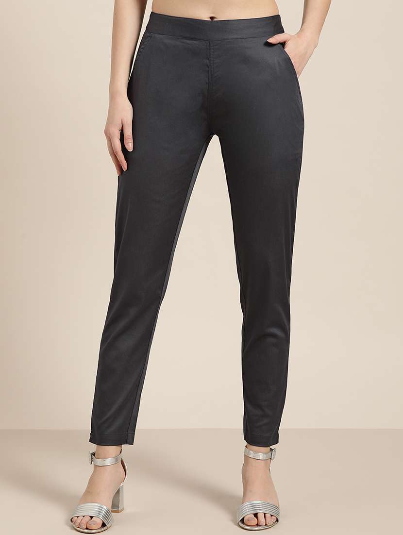- » high rise flat front trousers