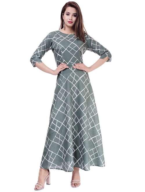checkered printed flared kurta