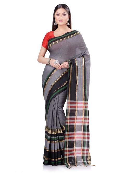 striped handloom saree with blouse - 18023466 - Very Small Image - 1
