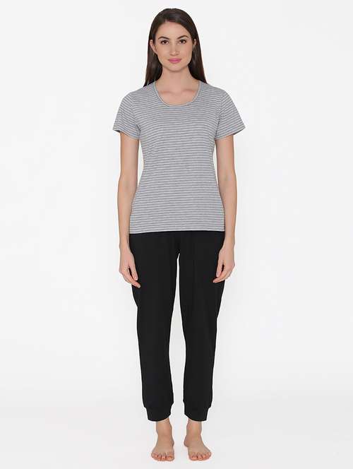 round neck striped tee nightwear pyjama set