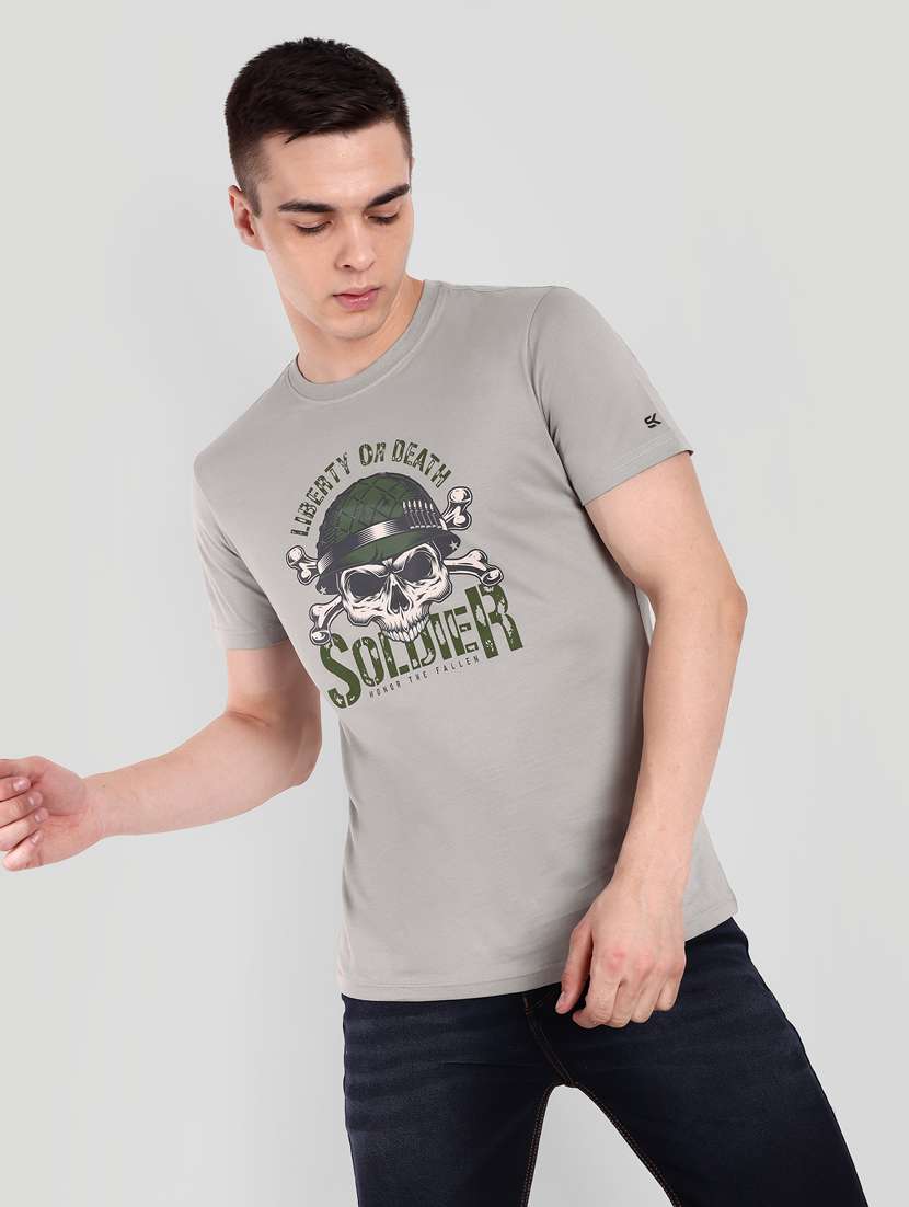 - » men round neck front print t-shirt