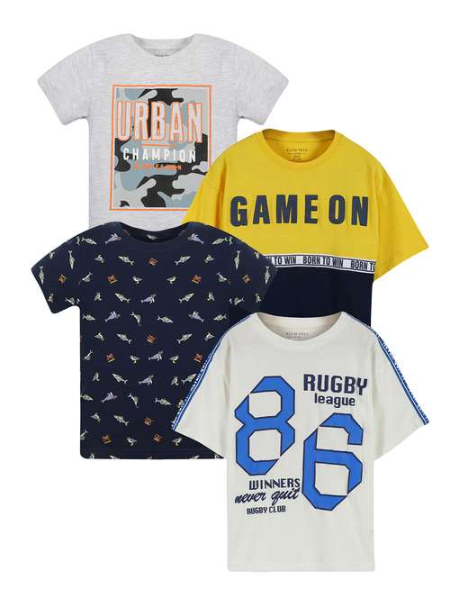 boys pack of 4 printed round neck t-shirt