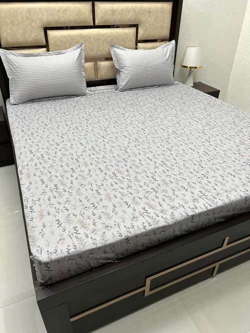 printed tc fitted king-sized bedsheet with 2 pillow covers